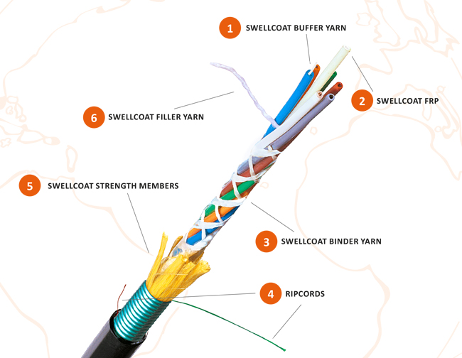 - FIBER-LINE® Swellcoat™ coated yarns enable a 100% dry-dry cable design